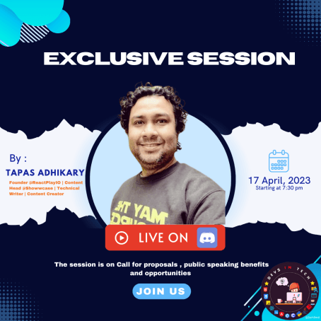 Unleash your speaking potential! Join Tapas Adhikary for an exclusive event delving into the art of public speaking, call for proposals, and the endless benefits and opportunities they bring. Don't miss your chance to shine on stage!
